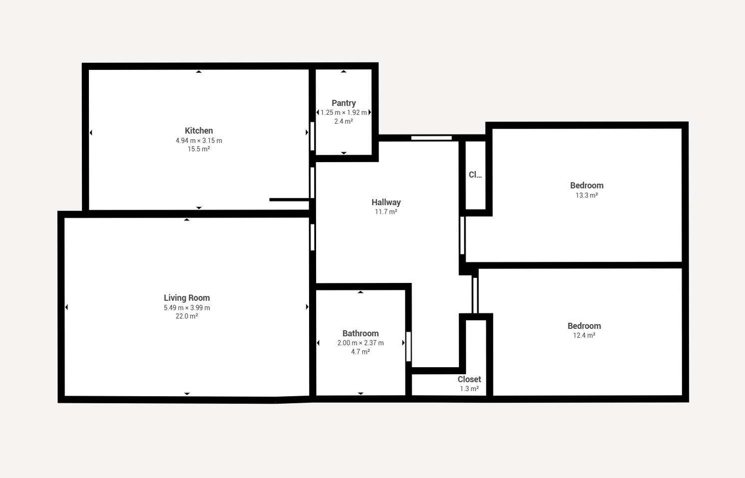 - Duas varandas: uma na sala e outra comum aos quartos.